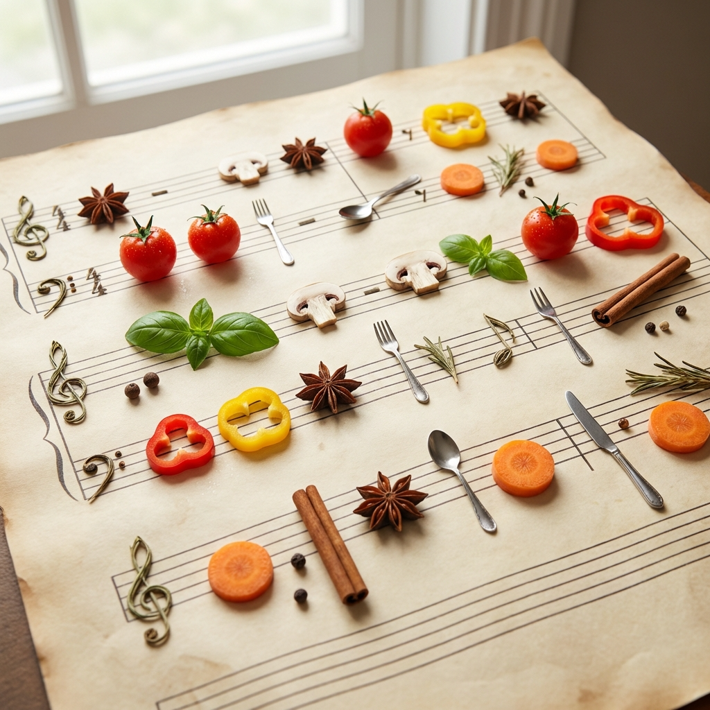 음악과 요리는 공통점이 참 많습니다. 재료(음표)의 조화가 중요하고, 만드는 사람(연주자)의 손길에 따라 맛이 달라지며, 무엇보다 사람들에게 위로와 즐거움을 준다는 본질이 같습니다.