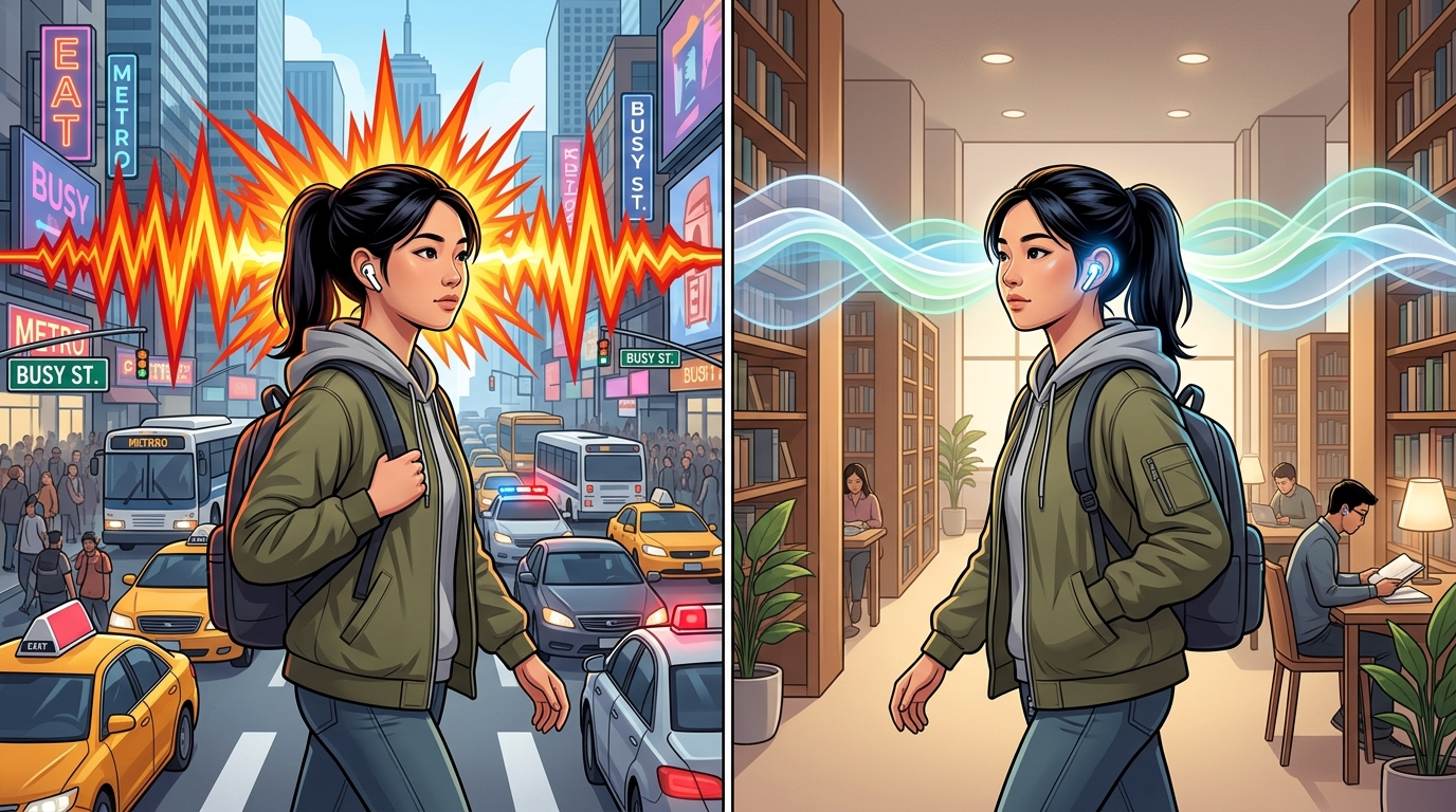 예를 들어, 출근길 붐비는 버스 안에서 음악을 듣다가 조용한 사무실로 이동했다고 상상해 보세요. 기존에는 볼륨을 줄이거나 노이즈 캔슬링 모드를 수동으로 조절해야 했습니다. 하지만 '초개인화 공간 음향' 서비스는 주변 소음 레벨과 공간의 울림이 바뀌는 것을 AI가 즉각 감지합니다.