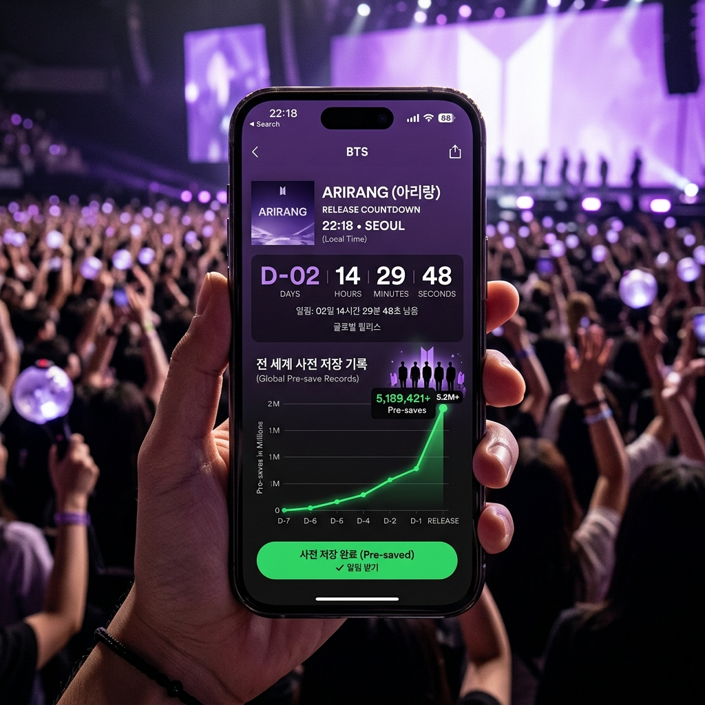 오는 20일 발매 예정인 방탄소년단의 정규 5집 앨범 '아리랑(Arirang)'이 발매 전부터 글로벌 음악 시장을 뒤흔들고 있습니다. 아직 정식 음원이 공개되지 않았음에도 불구하고, 이미 전설적인 기록을 세웠다는 소식, 자세히 알아볼까요?